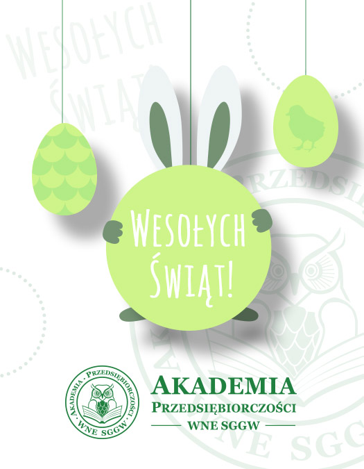 March 26, 2018Written by adminkl Zdrowych, pogodnych Świąt Wielkanocnych, pełnych wiary, nadziei i miłości. Radosnego, wiosennego nastroju, serdecznych spotkań w gronie rodziny i wśród przyjaciół życzy zespół Akademii Przedsiębiorczości WNE SGGW.