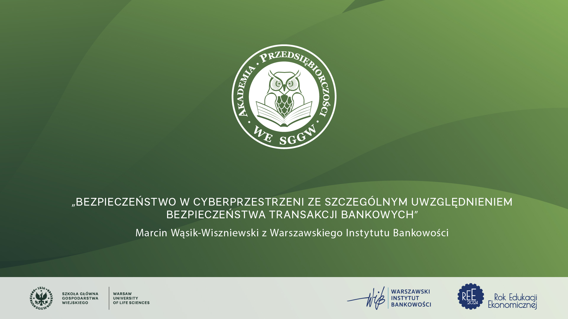 Zapraszamy na kolejny wykład otwarty pt: “Bezpieczeństwo w cyberprzestrzeni ze szczególnym uwzględnieniem bezpieczeństwa transakcji bankowych” w ramach cyklu wykładów otwartych online Akademia Przedsiębiorczości SGGW opracowanych we współpracy z Warszawskim Instytutem Bankowości. Inicjatywa związana jest z proklamowaniem przez Senat RP roku 2024 Rokiem Edukacji Ekonomicznej. Spotkanie odbędzie się już w środę 27.03.2024 w godz. 10:00 – 11:00 na platformie Teams. Prelegentem będzie: Marcin Wąsik-Wiszniewski Link do wykładu: https://teams.microsoft.com/l/meetup-join/19%3a1016ec9d63bc4ced9bc1b4e3b054ec85%40thread.tacv2/1710850198856?context=%7b%22Tid%22%3a%2270f92b42-1dd3-41a9-ae0e-01cbe47cbc79%22%2c%22Oid%22%3a%22fcdb9194-f888-418a-af51-d17b0b43b280%22%7d